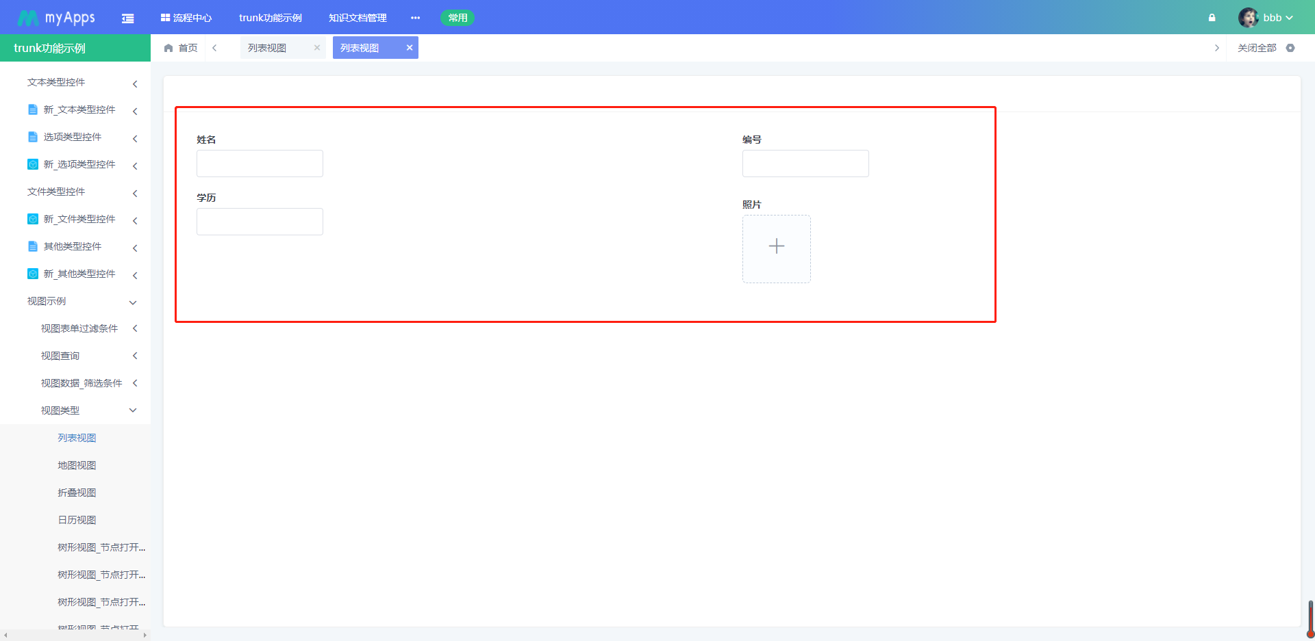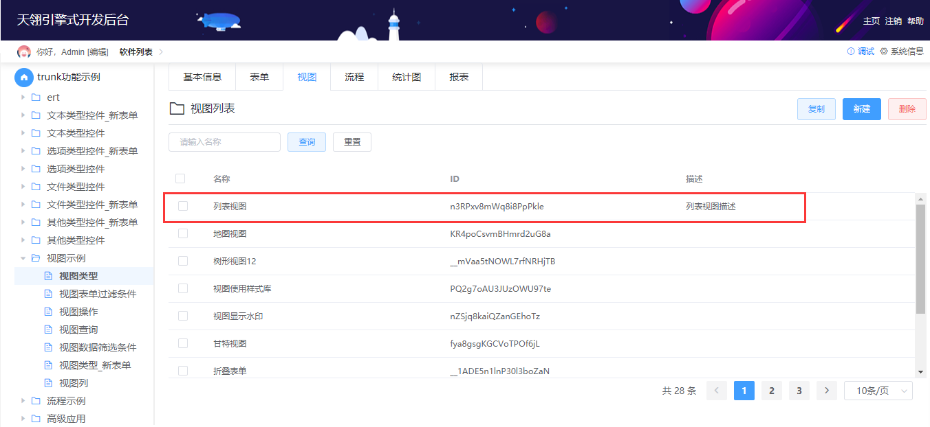 视图名称,可以开发者自己修改,如果是通过在表单界面一键生成的视图则直接读取表单名称作为视图名称,如果视图名称重复则在原有名称上加一。