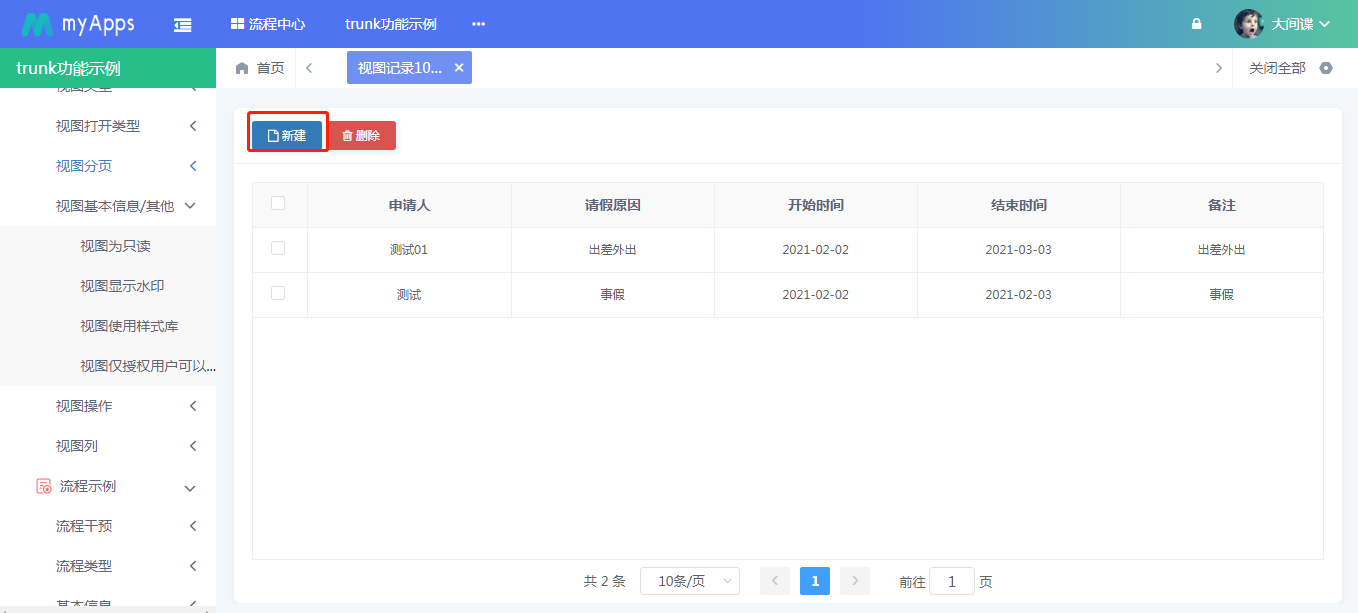 创建一条视图数据。如:项目中往数据库表单中录入数据。