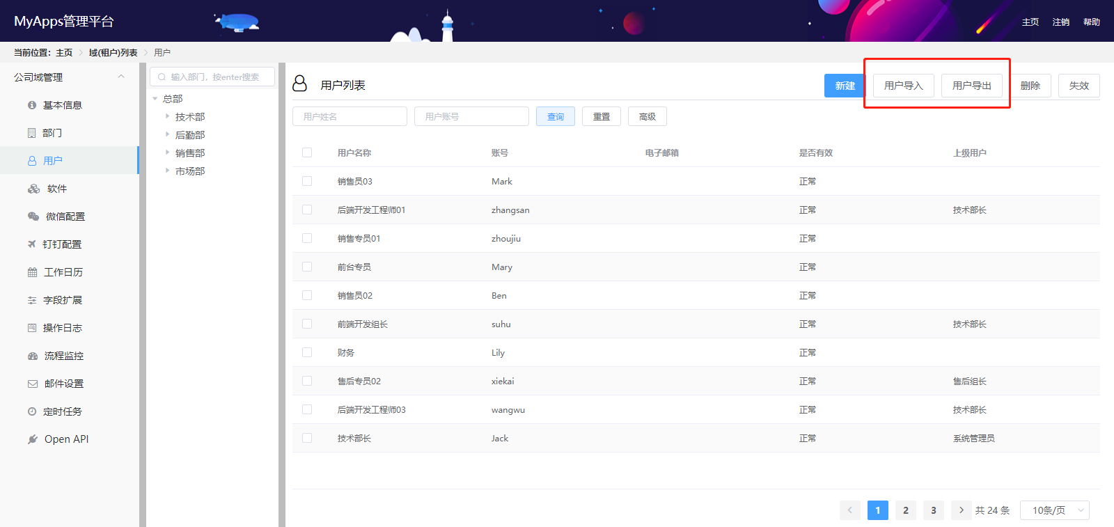 注:导入前,如果不知道格式具体的样式,可以先导出系统中原有的用户信息参考格式,再仿照原有的格式将数据导入系统。