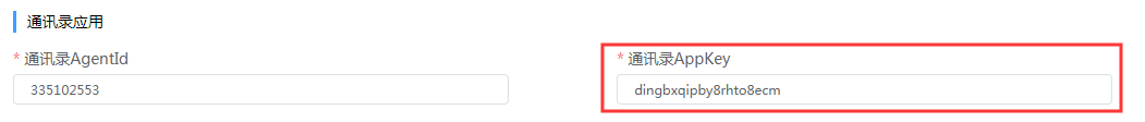 | 通讯录AppKey | 钉钉应用基础信息中查看AppKey |